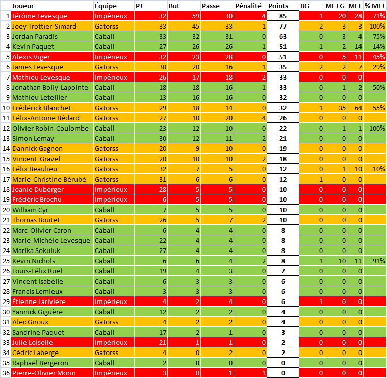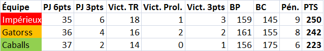 Voici le classement final de la saison. Félicitation aux Impérieux qui ont terminée en tête de saison.